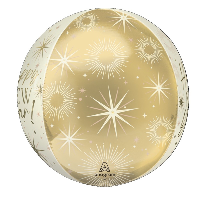 Ballon Alu Orbz Blanc et Doré Happy New Year – Anagram